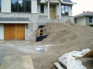 Not every project is a remodel. Not every project needs Boulder retaining wall with natural stone Many of our clients choose to work with us in their new homes. This is a great example of how an elevated entry doesn’t detract from a house, but enhances it. Creating a staircase full of platforms makes the journey easy, and allows people to enjoy the view along the way!